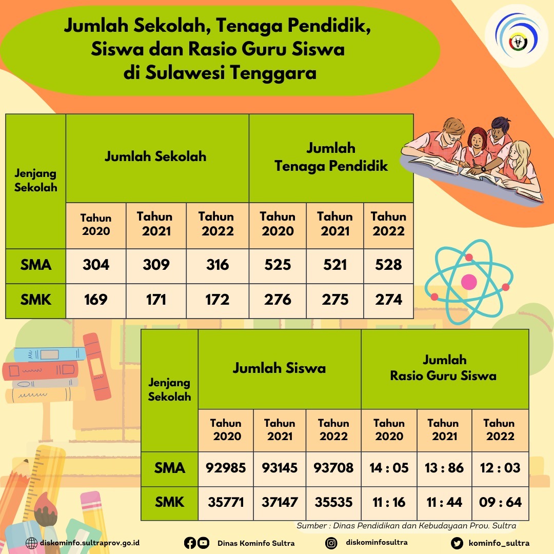 Jumlah Sekolah, Tenaga Pendidik, Siswa dan Rasio Guru Siswa di Sulawesi Tenggara