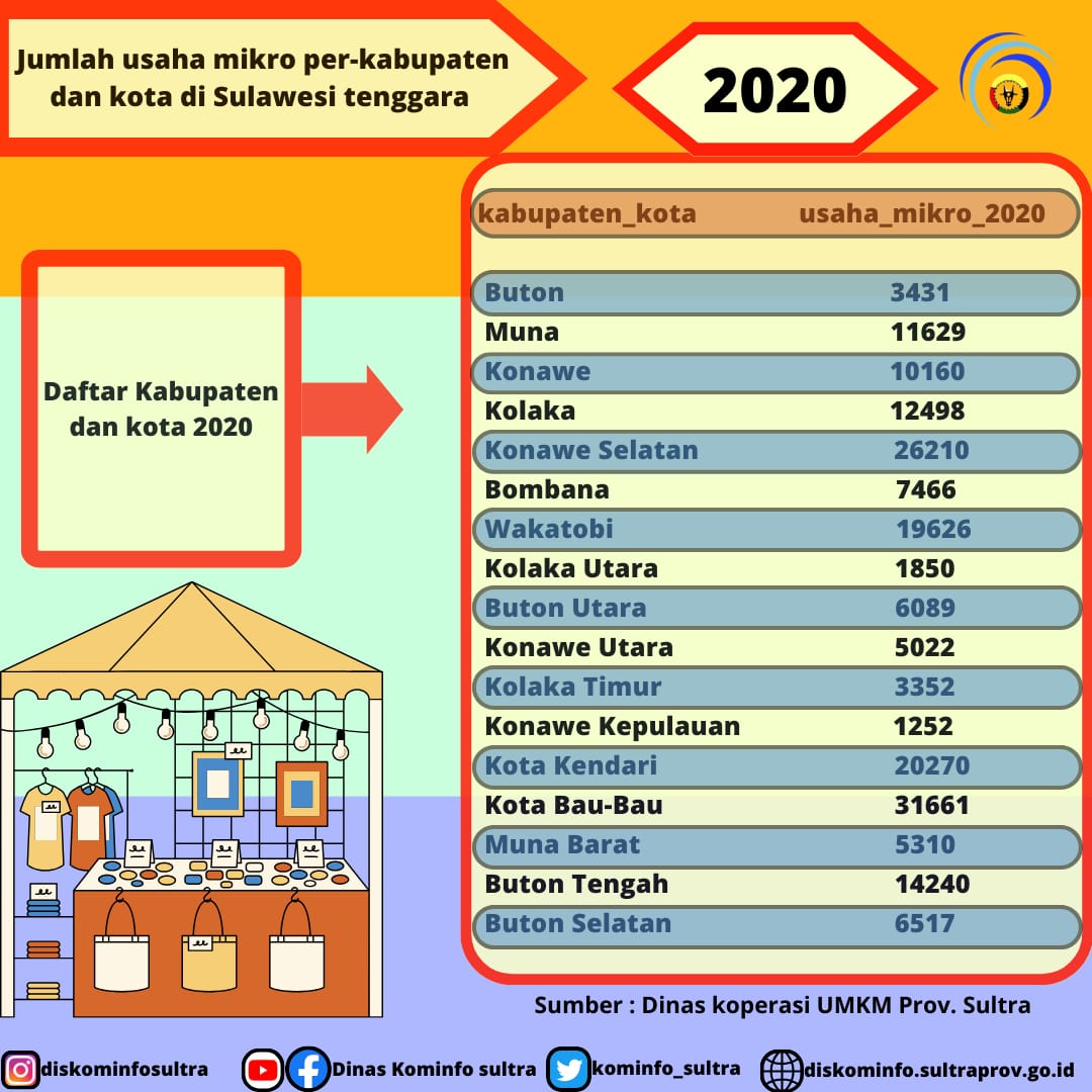 Jumlah Usaha Mikro Per-Kabupaten dan Kota di Sulawesi Tenggara 2020-2022