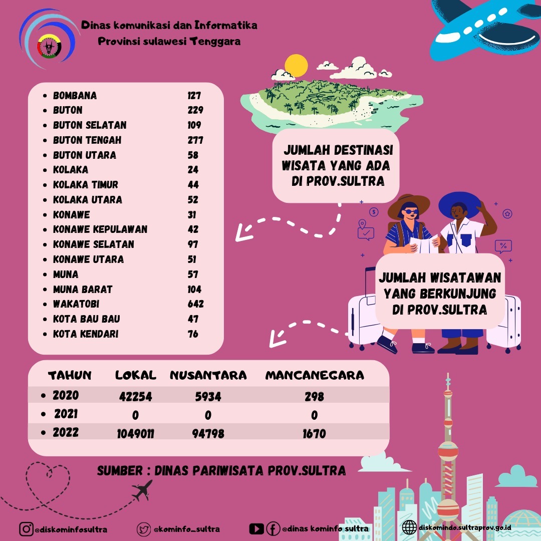 Jumlah Destinasi Wisata dan Jumlah Wisatawan yang Berkunjung di Provinsi Sulawesi Tenggara