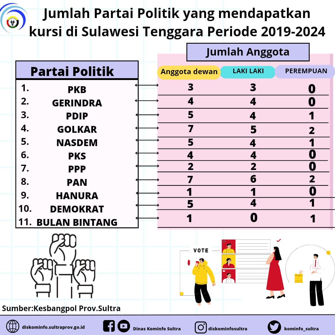 Jumlah Partai Politik yang Mendapatkan Kursi di Sulawesi Tenggara Periode 2019-2024