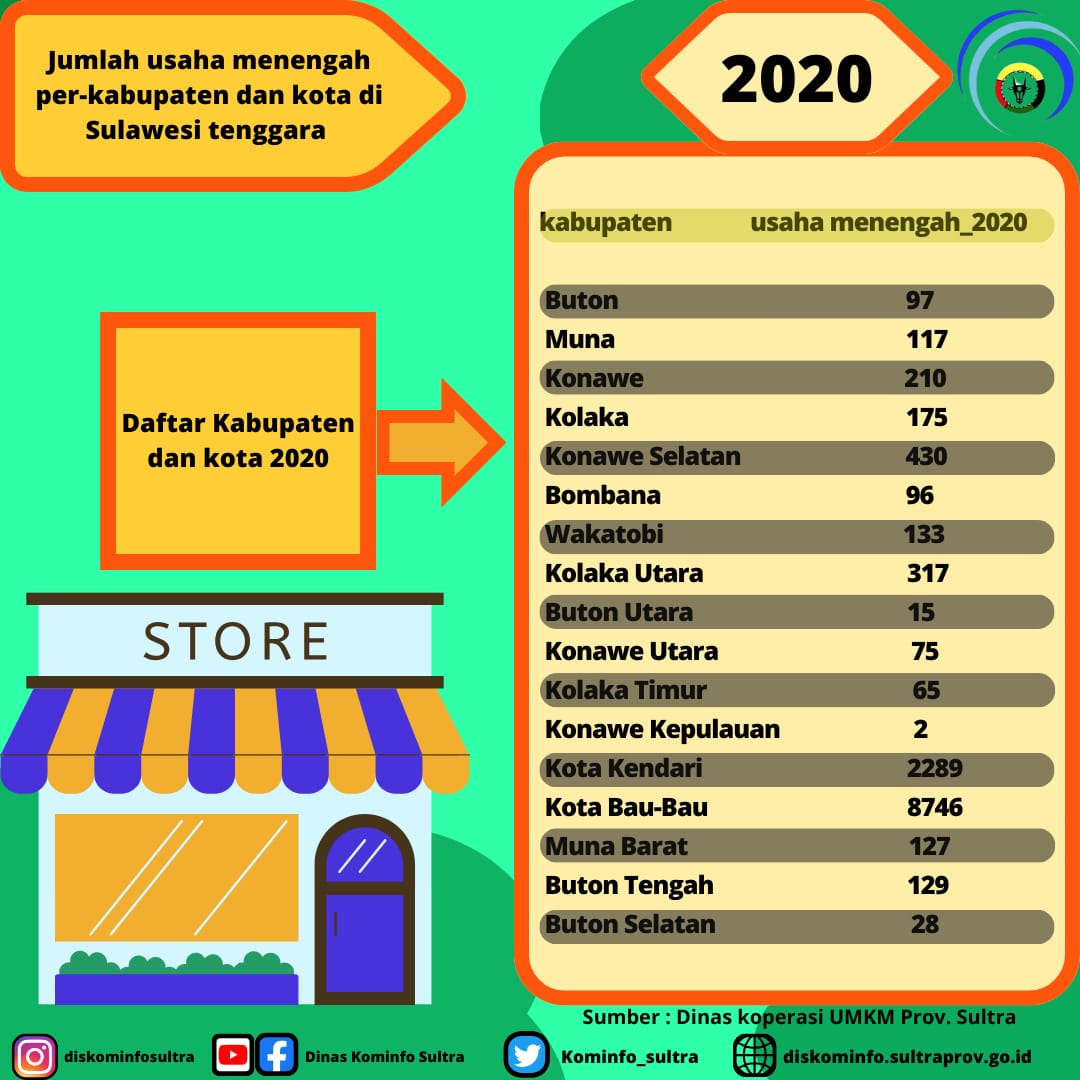 Jumlah Usaha Menengah Per-Kabupaten dan Kota di Sulawesi Tenggara 2020-2022